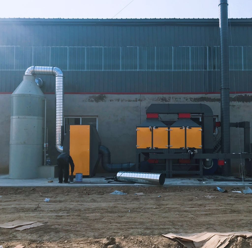 利用高能光束照射惡臭氣體,裂解惡臭氣體、如氨、三甲胺、硫化氫、甲硫醇、甲硫醚、二硫化碳和苯乙烯、硫化物VOC類,苯、甲苯、二甲苯的分子鏈結(jié)構(gòu)、使有機(jī)或無(wú)機(jī)高分子惡臭化合物分子鏈,在高能紫外線光束照射下降解轉(zhuǎn)變成低分子化合物如:CO2和H2O等